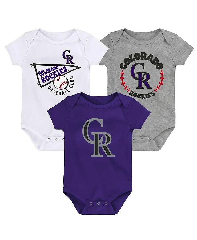 Baby Boys and Girls Purple, White, Heather Gray Colorado Rockies Biggest Little Fan 3-Pack Bodysuit Set