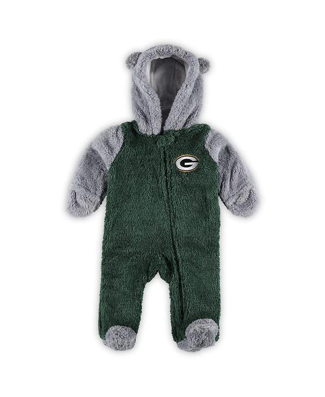 Baby Boys and Girls Green, Gray Green Bay Packers Game Nap Teddy Fleece Bunting Full-Zip Sleeper
