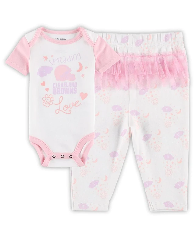 Baby Girls White Cleveland Browns Spreading Love Bodysuit and Tutu Leggings Set