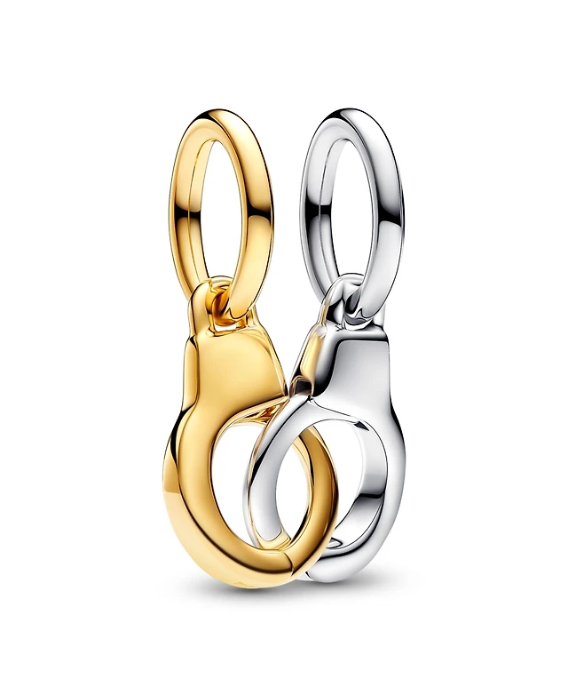 Pandora Sterling silver and 14k Gold-plated unique metal blend Openable & Splittable Handcuffs Dangle Charm