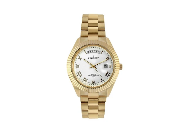 Peugeot Men's 40mm Wafer Slim Round Gold-Plated Case Watch-Champagne