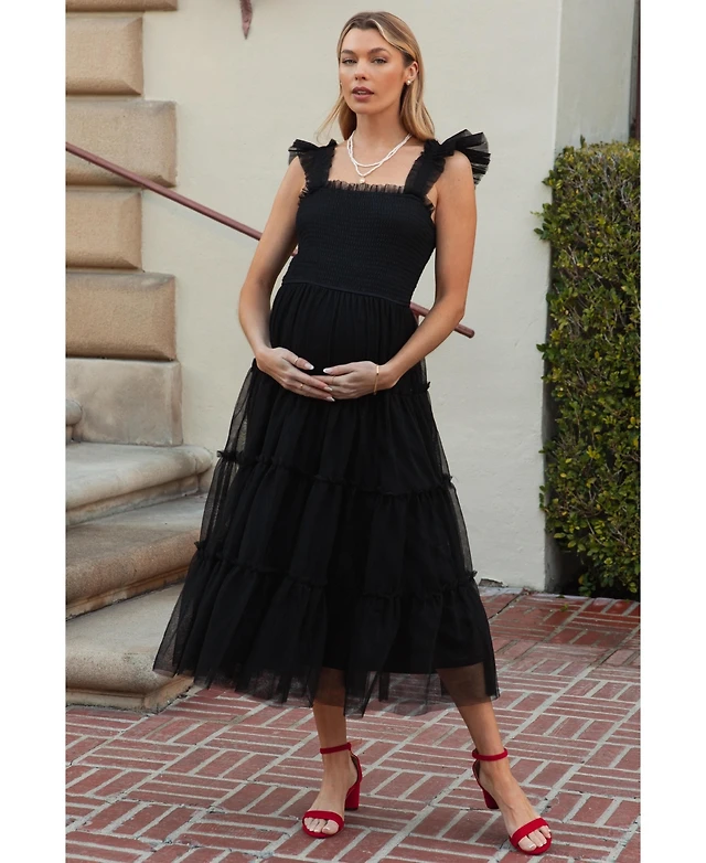 Pinkblush Maternity Light Pink Smocked Tiered Tulle Midi Dress