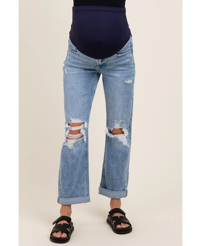 Pinkblush Maternity Blue Distressed Open Knee Relaxed Straight Leg Plus Jeans