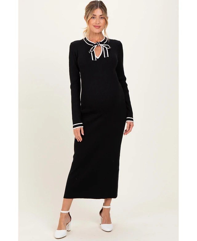 Pinkblush Maternity Black Tie Neck Sweater Midi Dress