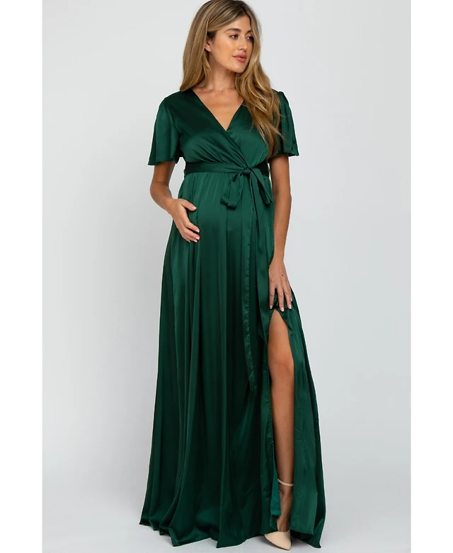 Pinkblush Maternity Green Side Slit Satin Maxi Dress