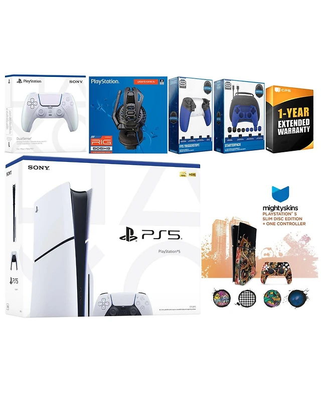 Sony Playstation 5 Slim Disc Bundle with Extra Controller, Plantronics Headset, Pro Gamer Kit, Trigger Kit and MightySkins Decal Voucher