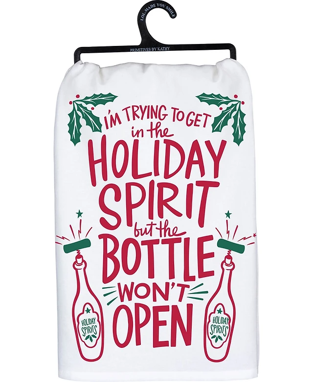 Primitives by Kathy I'm Trying To Get in The Holiday Spirit But The Bottle Won't Open Kitchen Towel