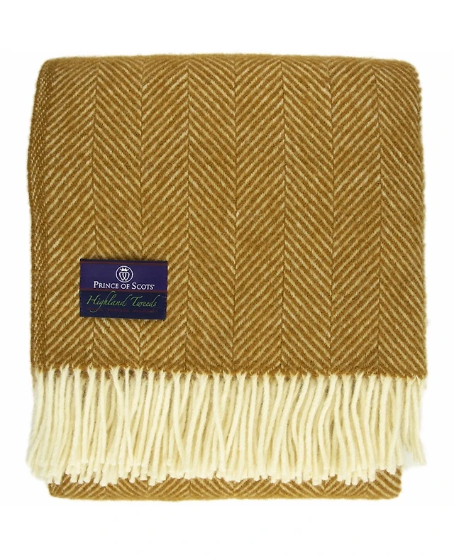 Prince of Scots Highland Tweed Herringbone Pure Wool Oversized Throw, 59" x 72"
