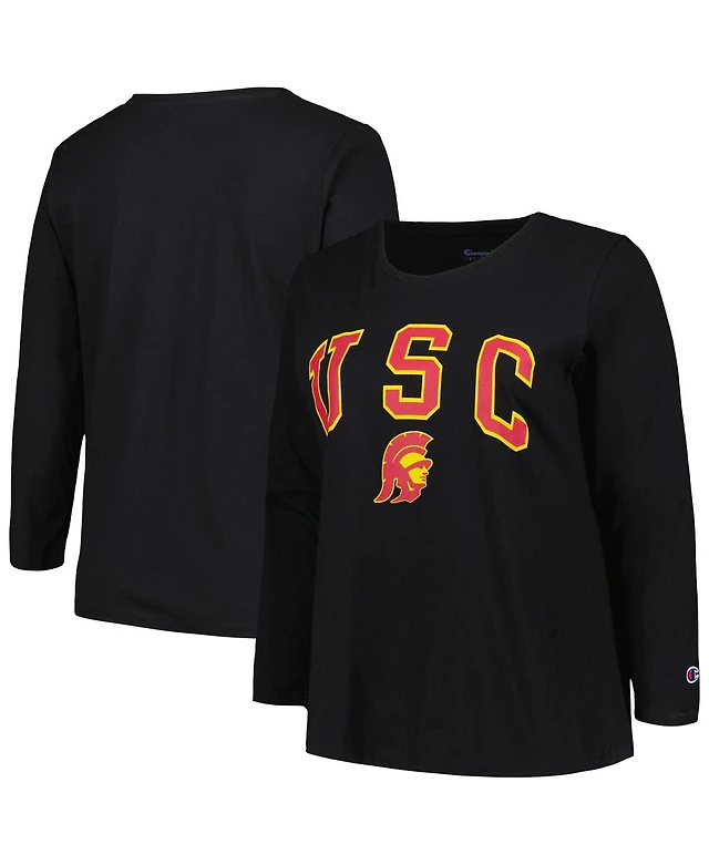 Profile Women's Black Usc Trojans Plus Size Arch Over Logo Scoop Neck Long Sleeve T-Shirt
