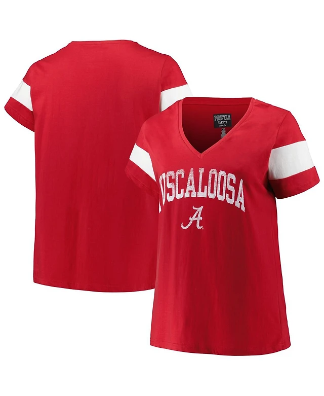 Profile Women's Heather Crimson Alabama Tide Plus Arched City Sleeve Stripe V-Neck T-Shirt