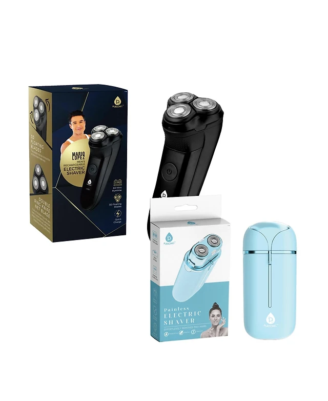 Pursonic Shaving Bundle: Mario Lopez Men's Rechargeable Electric Shaver & Painless Electric Shaver