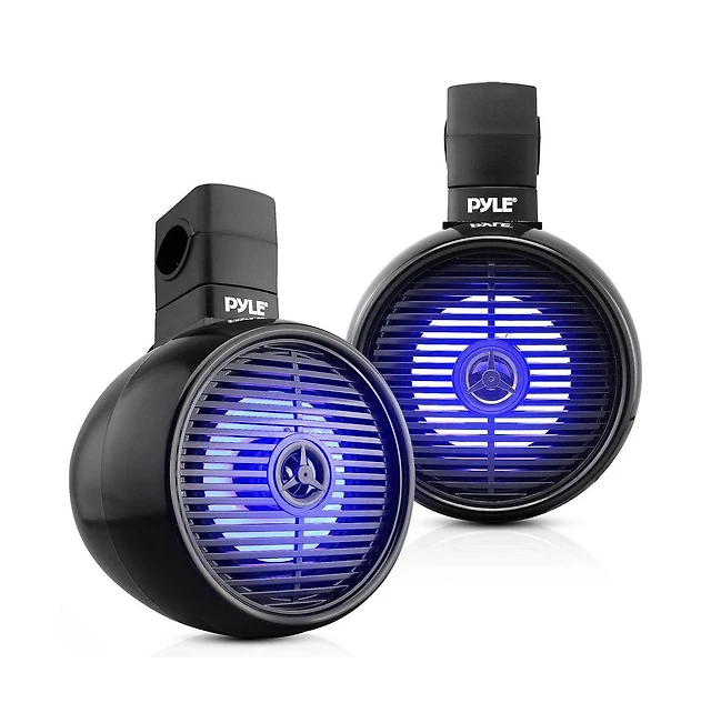 Pyle 4'' Waterproof Marine Tower Speakers with Led Lights, 300W, Black