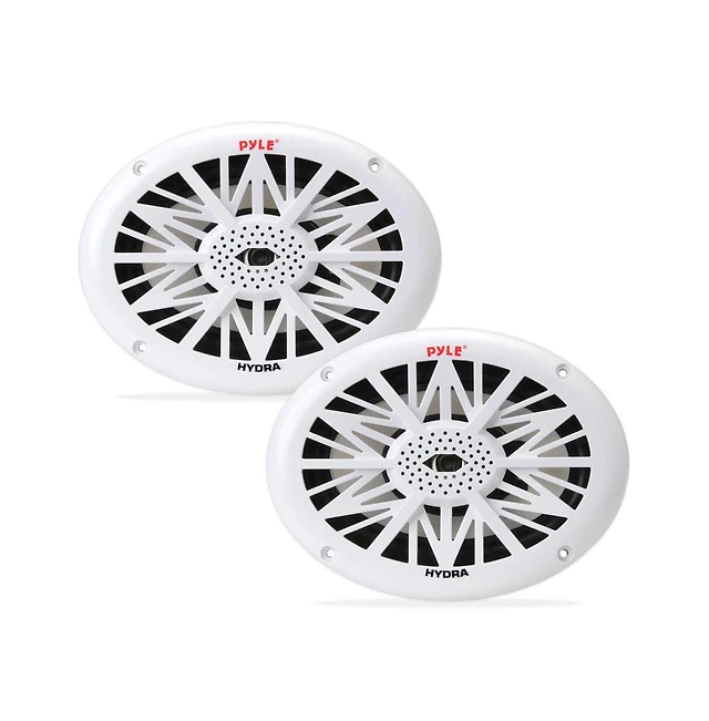 Pyle Dual 6'' x 9'' Water Resistant Marine Speakers, 2-Way Full Range Stereo Sound, 260 Watt, White