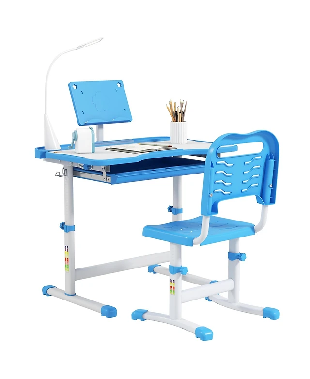 Qaba Height Adjustable Kids Desk and Chairs Set with Tilt Desktop,