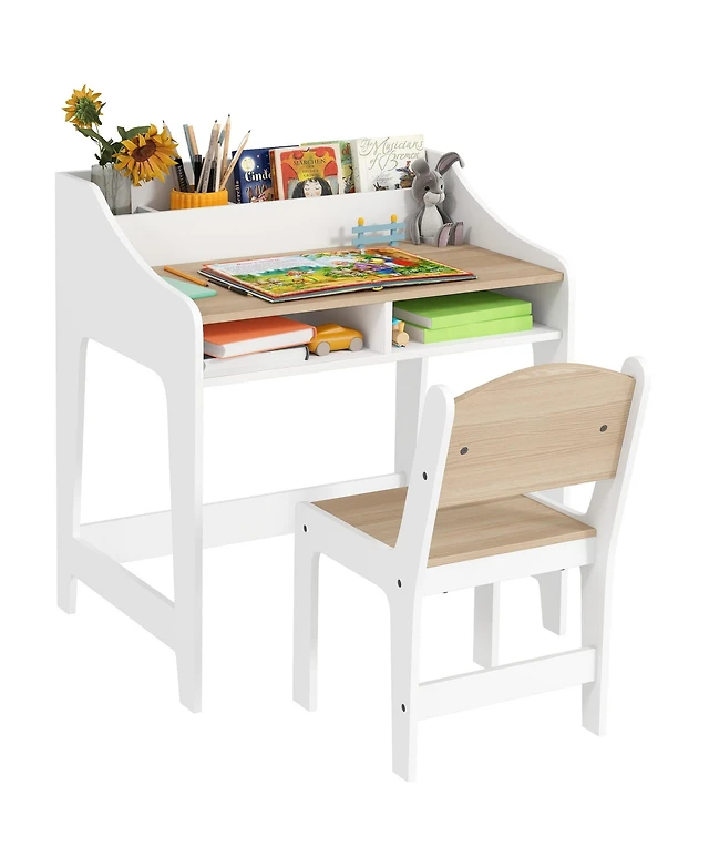 Qaba Kids Study Desk and Chair Set with Tiltable Desktop and Hutch,