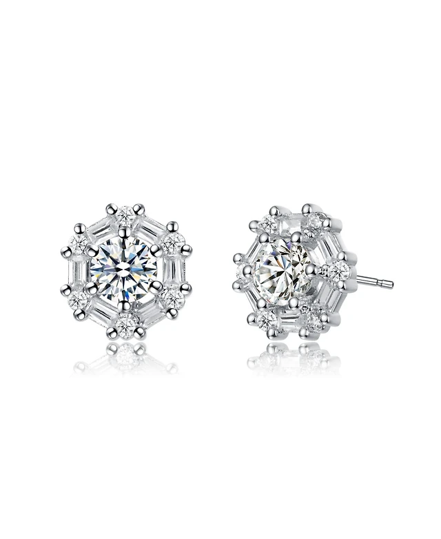 Round and Colored Baguette Cubic Zirconia Stud Earrings