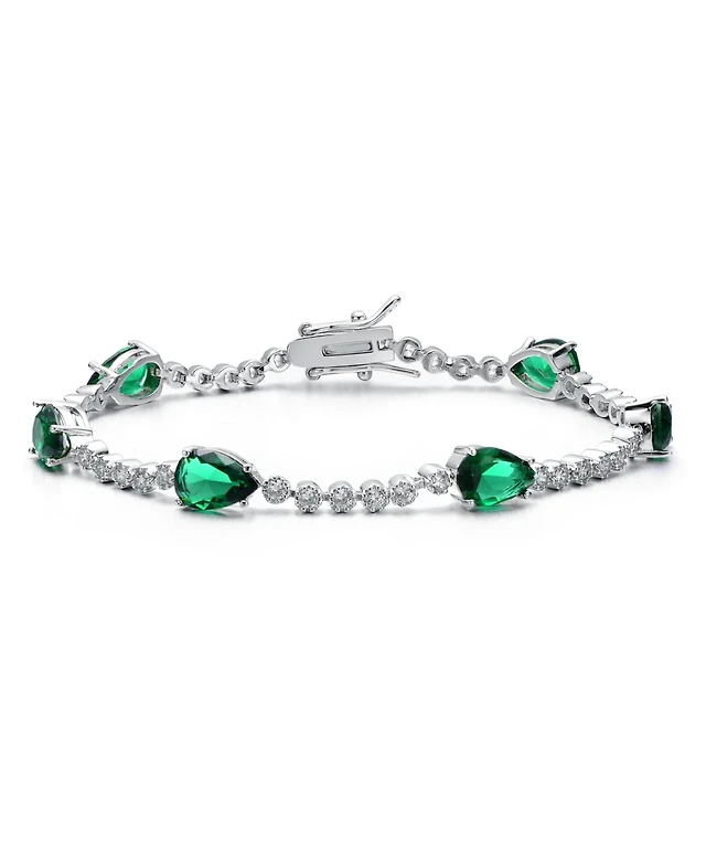Rachel Glauber 14K Gold Plated Green Cubic Zirconia Bangle Bracelet