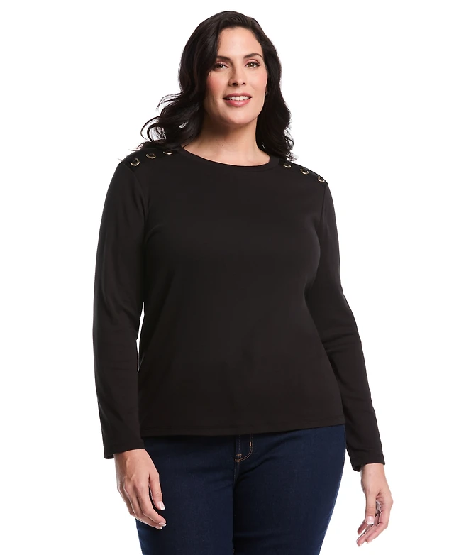 Rafaella Women's Plus Split Collar Long Sleeve Top