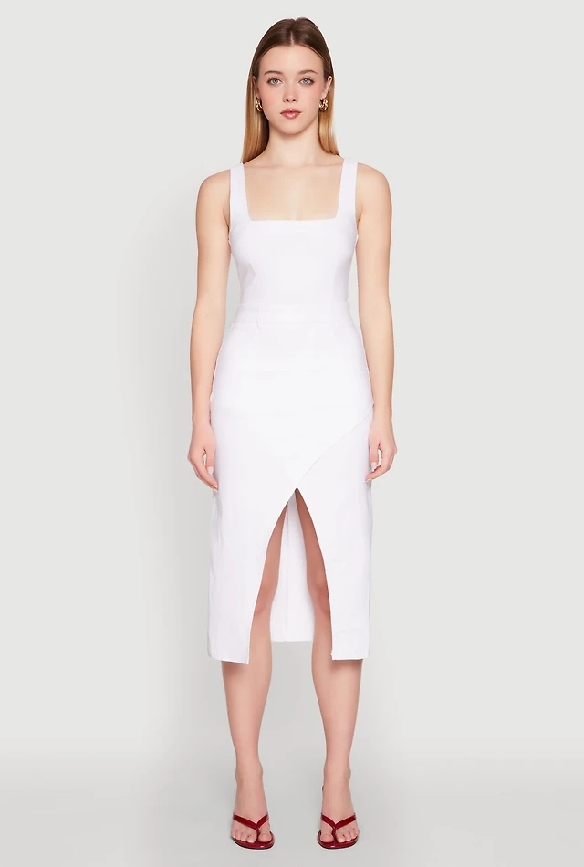 Womens Iris Lace Up Back Side Slit Cami Dress, White, Size M