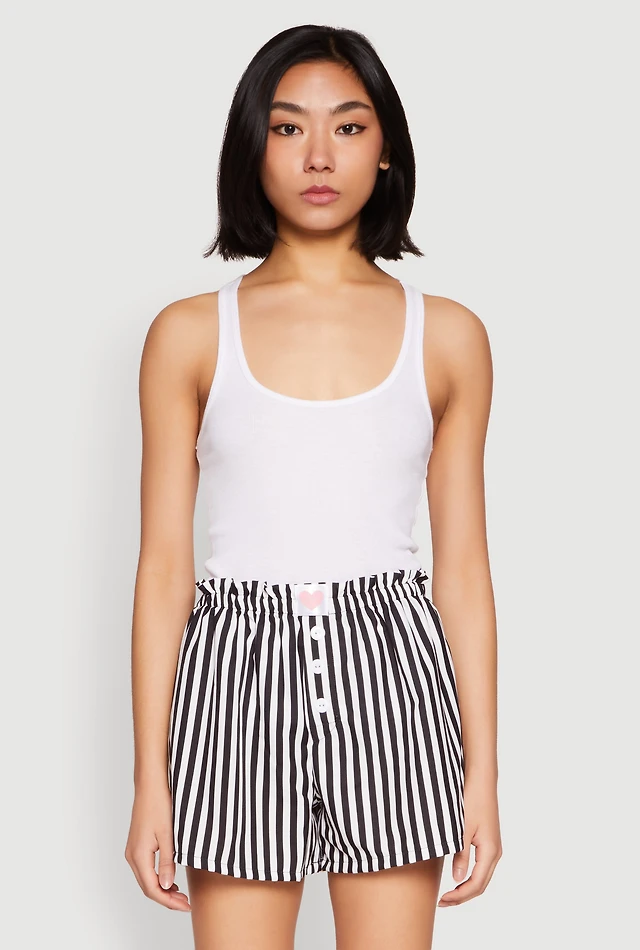 Heart Detail Striped Pajama Shorts