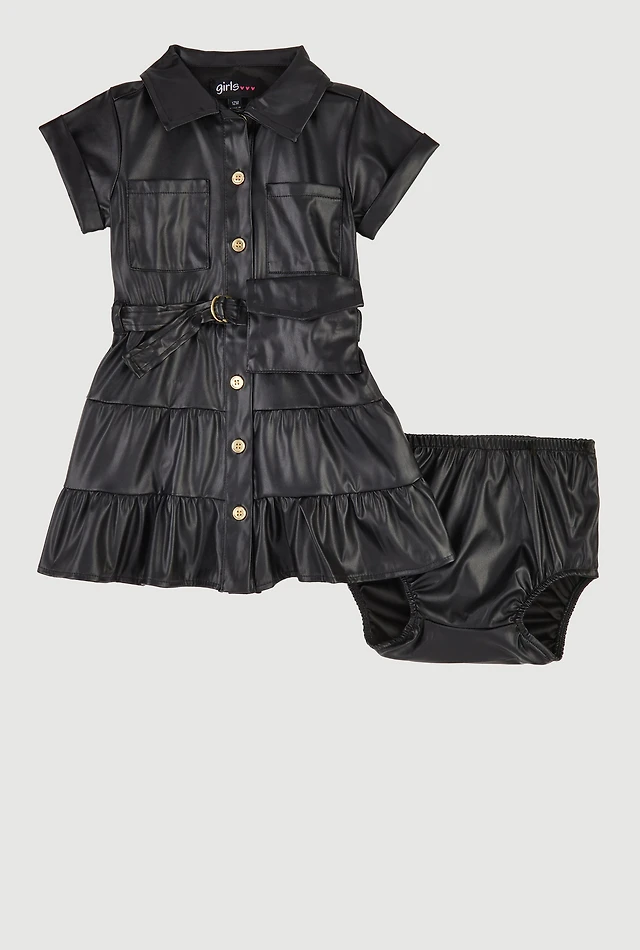 Baby Girls 12-24M Faux Leather Shirt Dress with Bubble Shorts