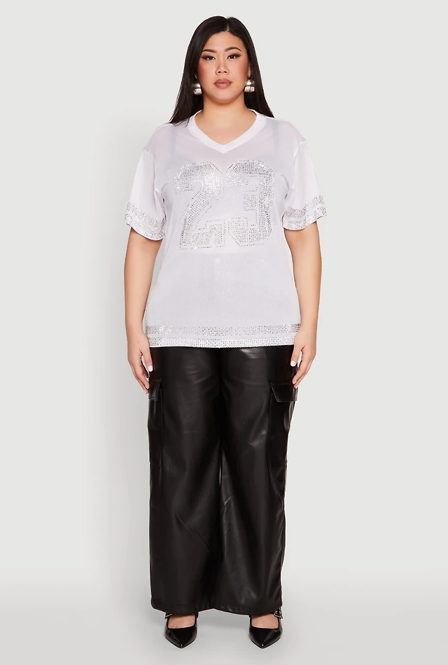 Plus Rhinestone Studded Graphic Print Mesh Tee