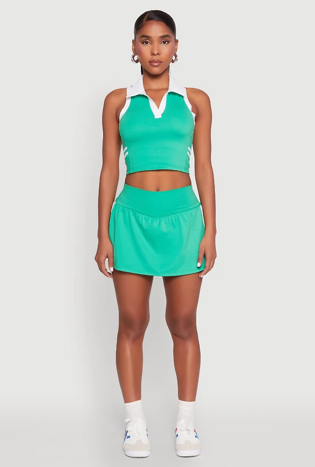 Varsity Stripe Sleeveless Cropped Polo Top