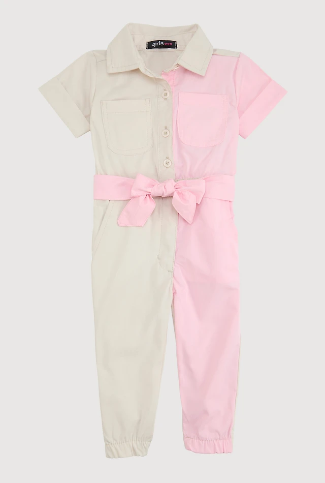 Baby Girls 12-24M Color Block Tie Waist Utility Romper