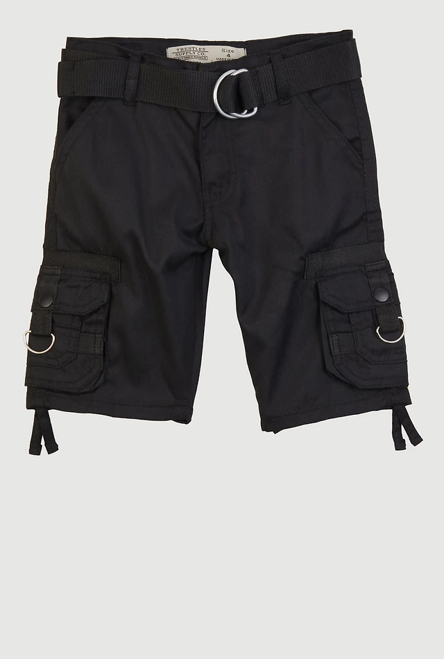 Little Boys D Ring Belted Utility Shorts
