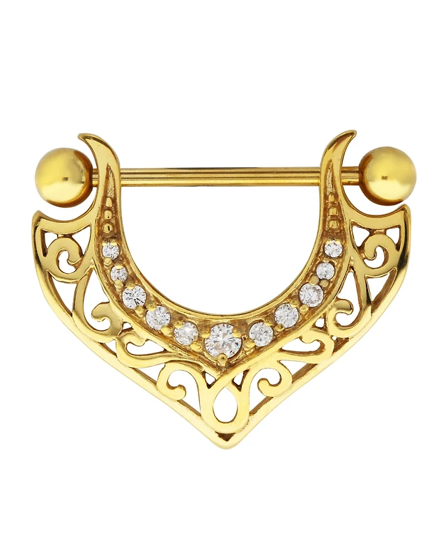 Bodifine Stainless Steel Crystal Filigree Shield Nipple Bar