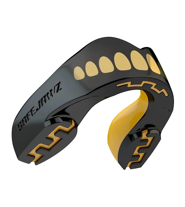 SafeJawz Extro Dual Layer Mouth Guard with Case for Basketball, Lacrosse, Football, Mma, Hockey, Wrestling - Junior Up to 11 Years Goldie