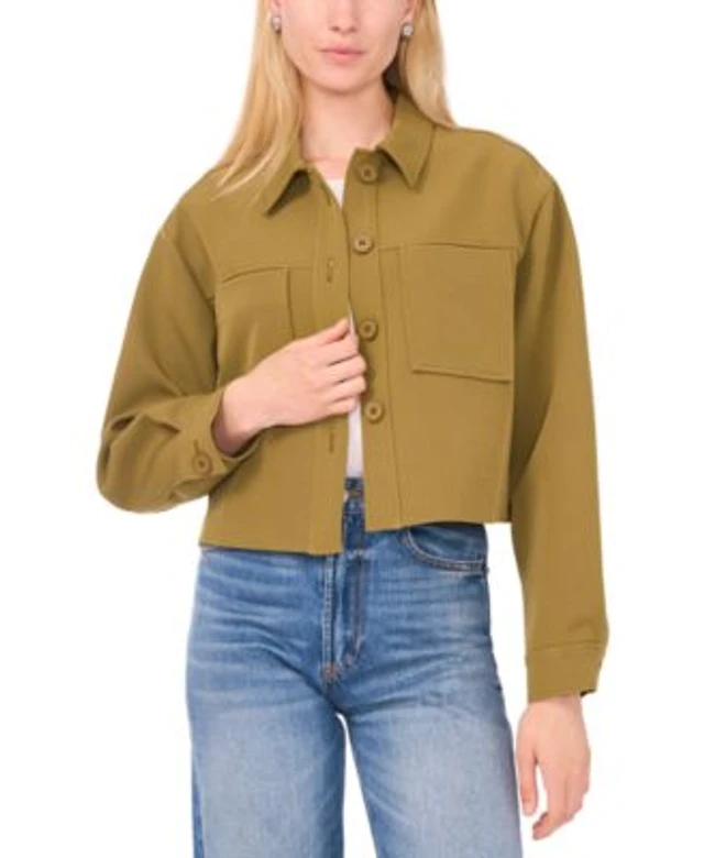 Sam & Jess Petite Button-Front Smocked-Cuff Blouse
