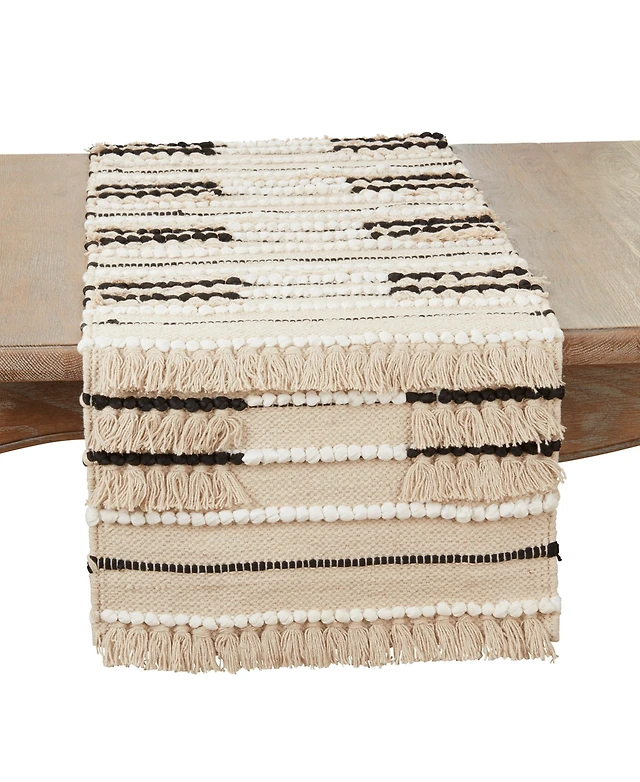 Saro Lifestyle Fringe Stripe Design Table Runner