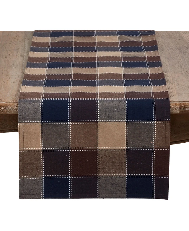 Saro Lifestyle Stitched Plaid Cotton Blend Table Runner