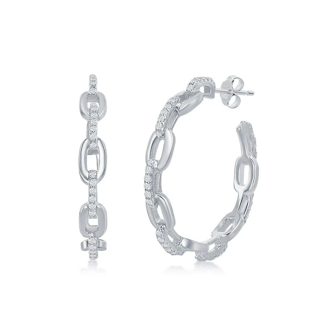 Simona Sterling Silver 19mm Cz Hoop Earrings