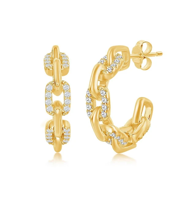 Simona Sterling Silver, Cz Charm Hoop, Gp Earrings