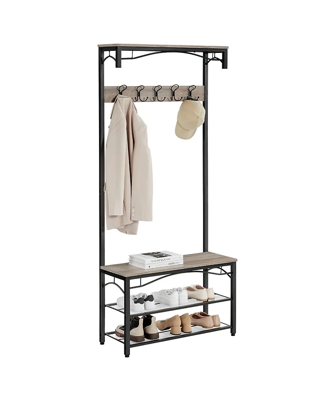 Songmics Home Entryway Industrial Style Coat Rack with Shoe Storage, 3-in-1 Design Steel Frame, Grey