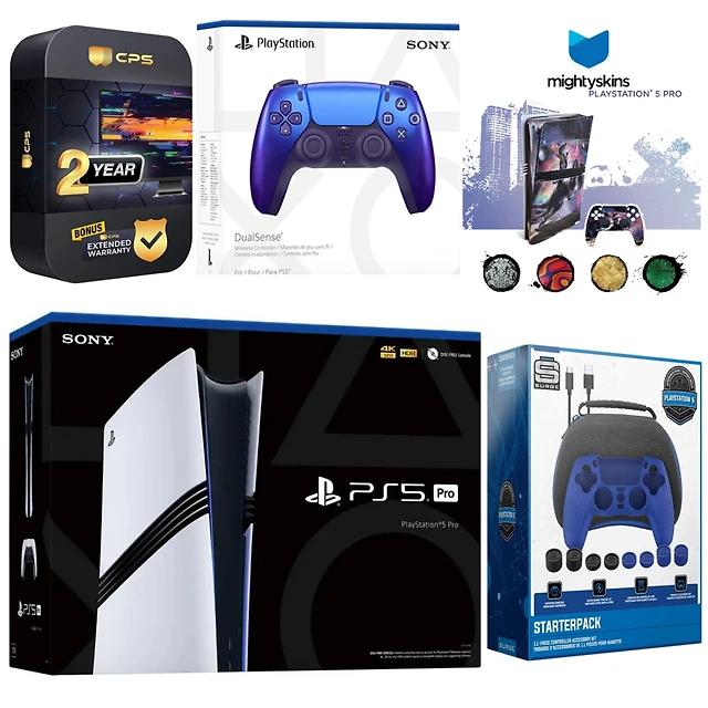Sony PlayStation 5 Pro with Extra Galactic Purple Controller, Pro Gamer Starter Kit and MightySkins Decal Voucher