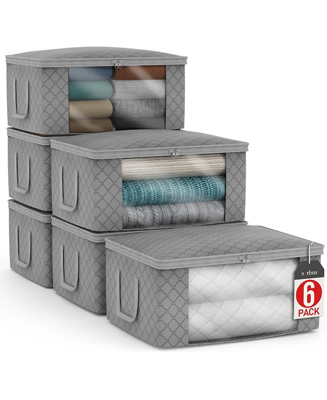 Sorbus 6 Pack Medium Foldable Clothes Storage Bags with Clear Window, Zipper Lid and Carry Handles - for Organizing Bedroom, Closet