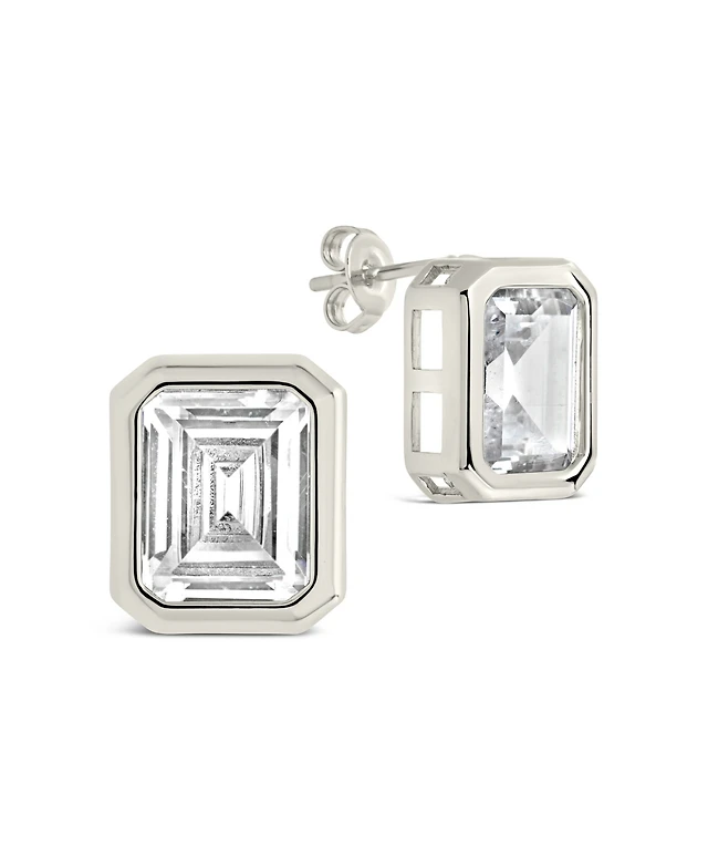 Sterling Forever Silver Emerald Cut Prong Set Stud Earrings