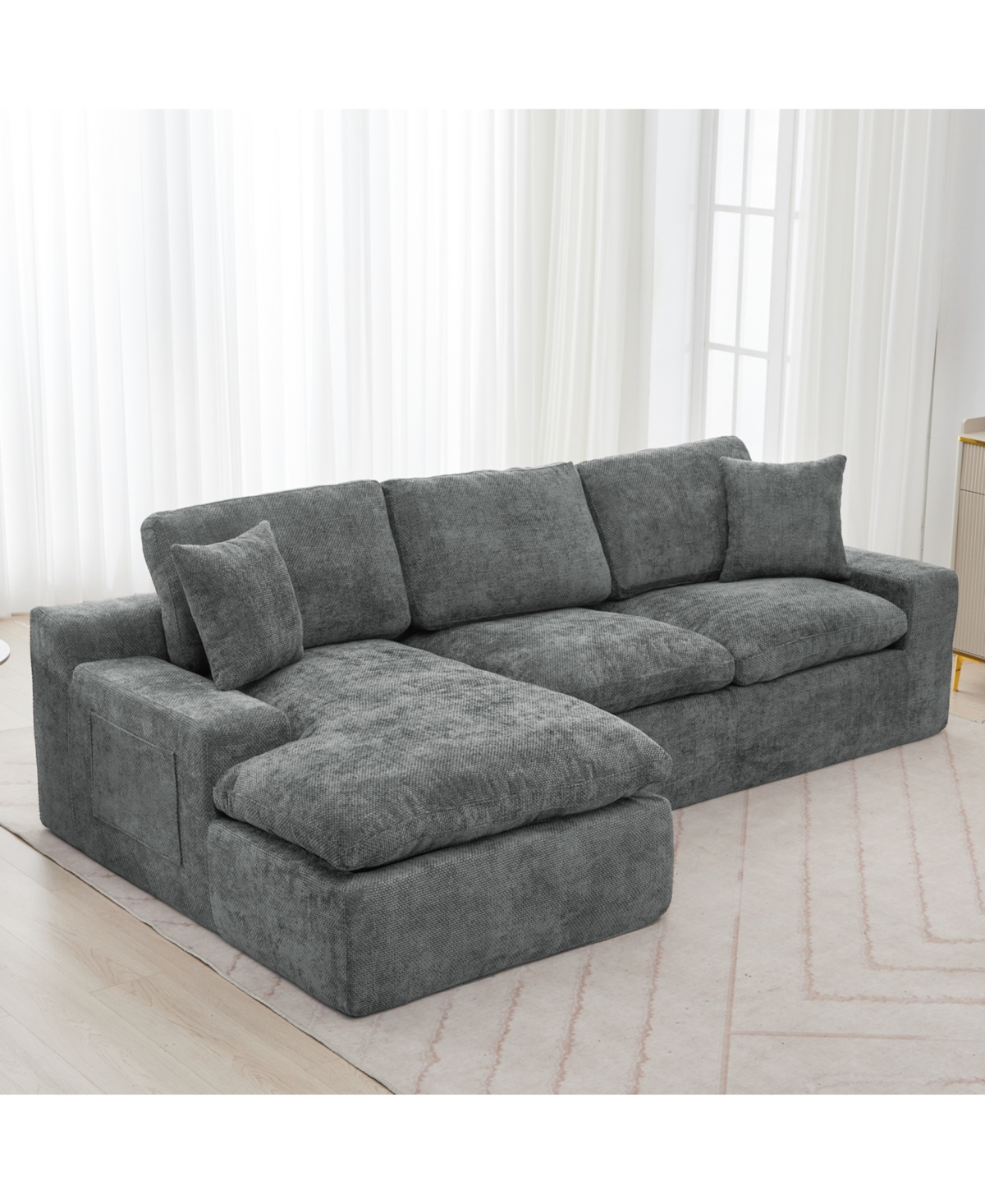 Streamdale Furniture Chenille Convertible Sofa Bed with Storage Pockets & Cushions