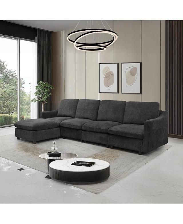 Streamdale Convertible Corduroy Sofa, Large 4 Seat, Living Room Chair, Dark Grey