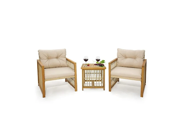 Outdoor Acacia Wood Bench with Backrest and Armrests