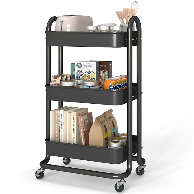 Heavy Duty Rolling Kitchen Cart with Tower Holder and Drawer-Brown