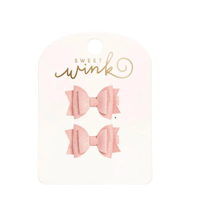 Sweet Wink Girls Blush Glitter Bow Clip Set