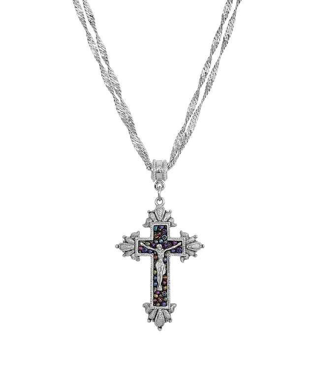 Silver-Tone Crucifix Cross Necklace