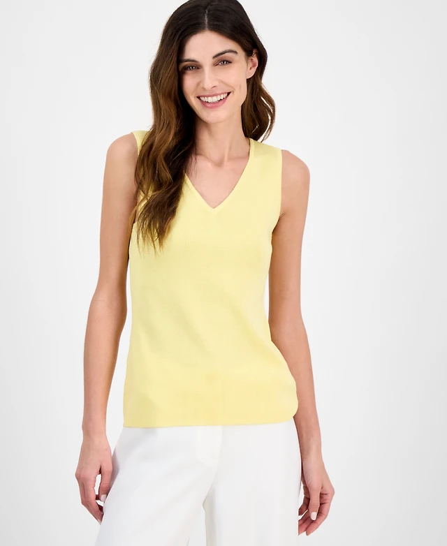 Tahari Asl Women's Fine-Rib Sleeveless V-Neck Sweater