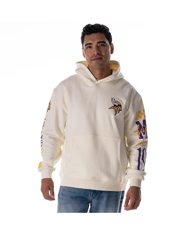 The Wild Collective Men's and Women's Cream Minnesota Vikings Stacked Graphic Sleeve Fleece Hoodie