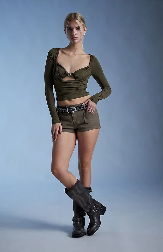 Third Charm Ayana Studded Pleated Low Rise Denim Mini Skort