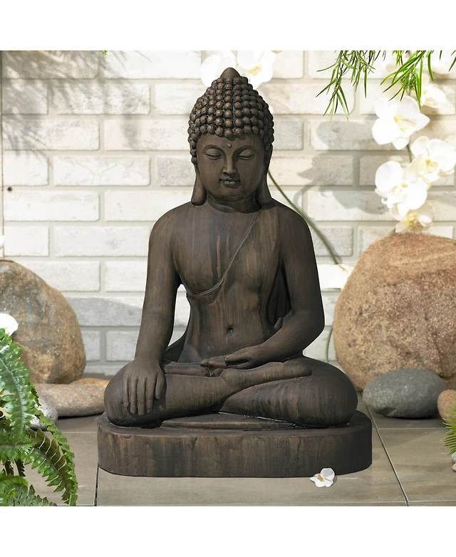 John Timberland Sitting Buddha Statue Sculpture Zen Asian Decor Outdoor Garden Yard Dark Sandstone Faux Stone Finish 29 1/2" High